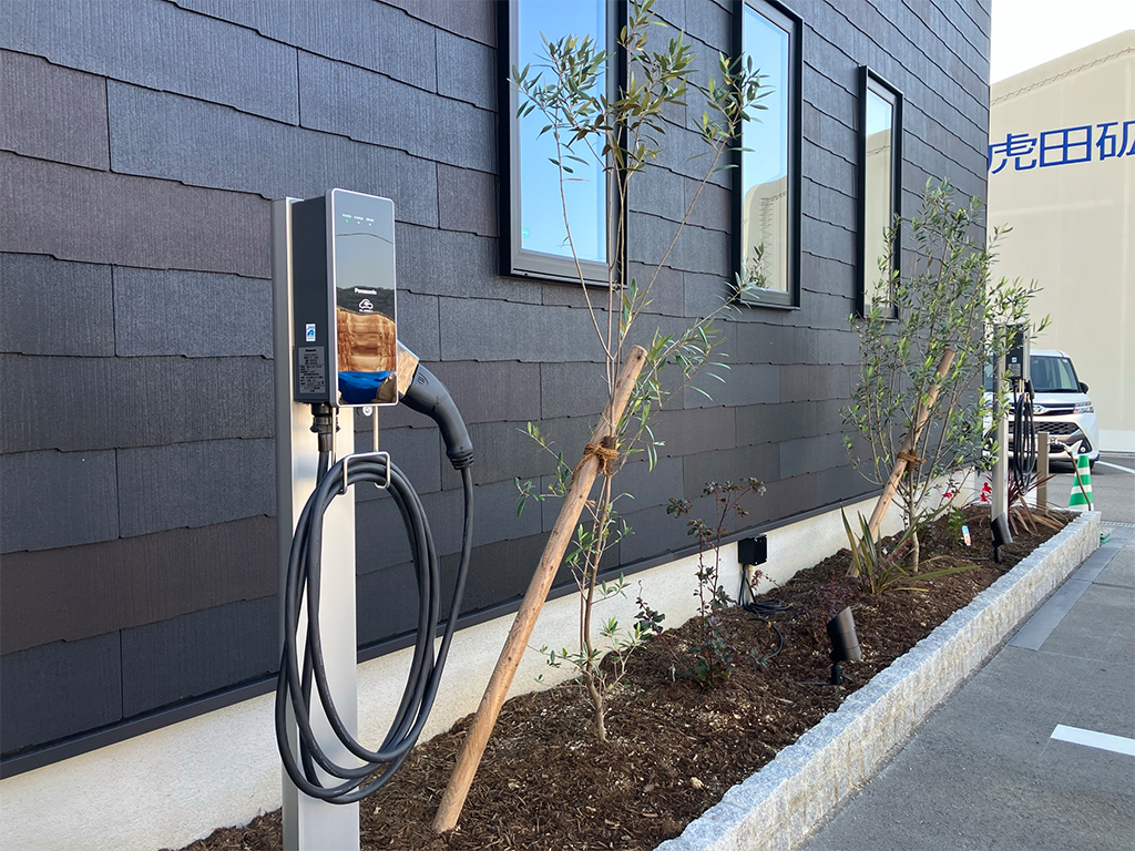 当社では、遮熱構造の事務所やLED照明の導入、地下水の活用など、環境に配慮した取り組みを行っています。さらに、令和7年にソーラーパネルと電気自動車用の充電器を設置し、再生可能エネルギーの活用とCO₂削減を進めています。これからも、持続可能な社会の実現に向けて積極的に取り組んでまいります。